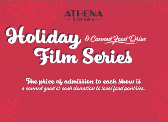 As always, admission is a canned good (or other non-perishable food product) or a cash donation to the Athens Food Pantry. You can bring in donations and pick up tickets to the movies ahead of time during the Athena lobby hours, or online.