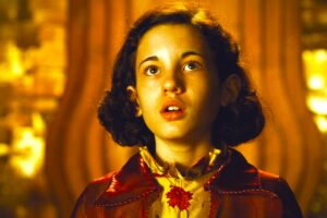It’s 1944 and the Allies have invaded Nazi-held Europe. In Spain, a troop of soldiers are sent to a remote forest to flush out the rebels. They are led by Capitan Vidal, a murdering sadist, and with him are his new wife Carmen and her daughter from a previous marriage, 11-year-old Ofelia. Ofelia witnesses her stepfather’s sadistic brutality and is drawn into Pan’s Labyrinth, a magical world of mythical beings.