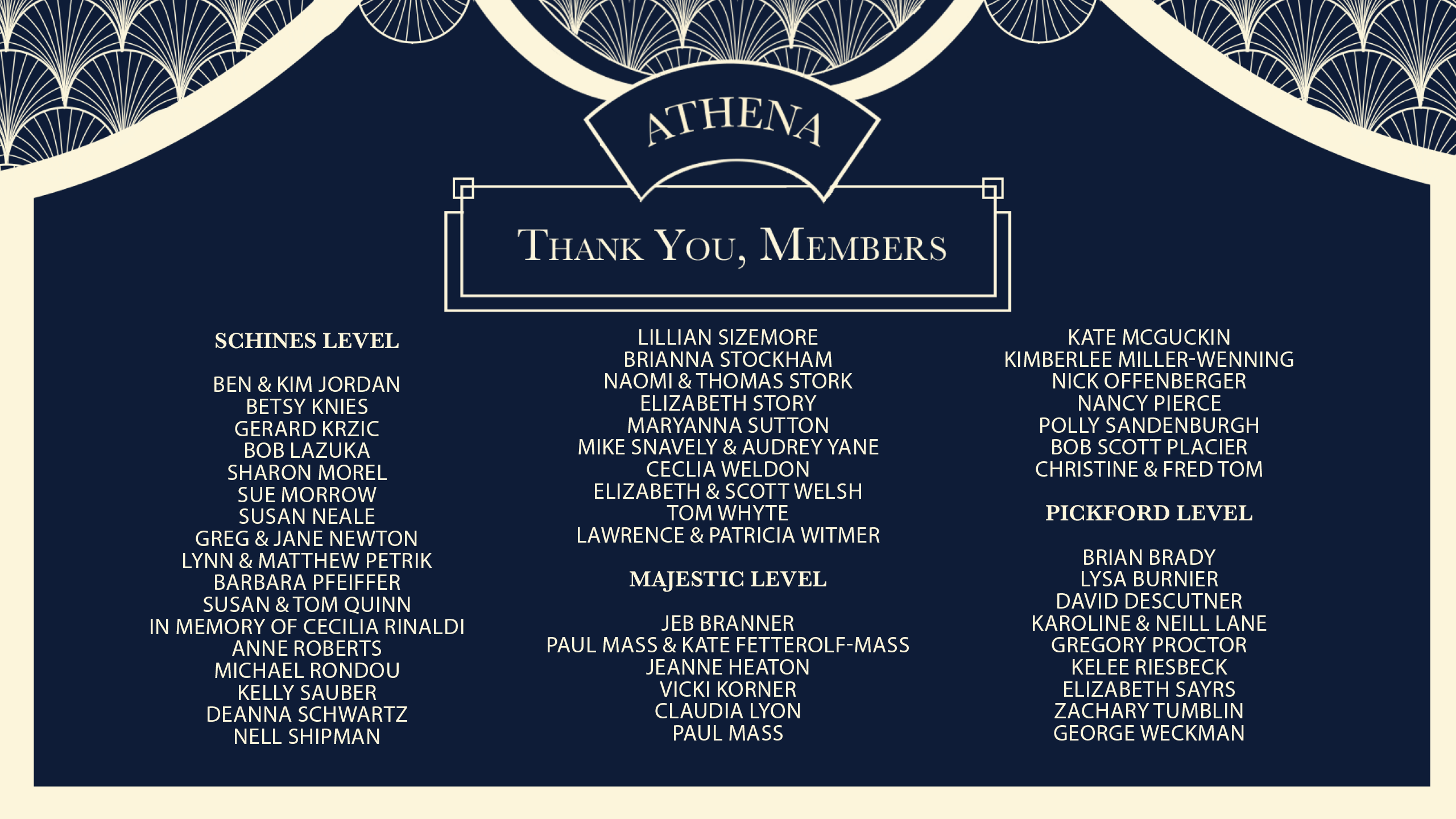 The Athena Cinema hosted its Grand Opening on June 3, 1915. Back then, it was called “The Majestic” and admission was 5 cents. This level honors more than century of keeping the “lights on” over Court Street. The Majestic Membership is available in two varieties: