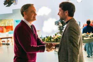 Lloyd Vogel (played by Matthew Rhys of The Americans), an investigative journalist, is assigned to do a profile on kids tv show host Fred “Mr. Rogers” Rogers (played by Tom Hanks). Skeptical at first, Vogel struggles to see how anyone could exude and promote such a good-natured-ly attitude to the degree that Mr. Rogers does. However, Vogel is soon won over by Rogers’s aura of positivity – a shining example of empathy, compassion, decency, and kindheartedness that the world could use a lot more of – and he soon finds his jaded outlook on life begin to evaporate.